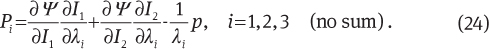 which have to be inserted in Eqs. (17) and (18). Again, the analytical relations for the Piola stresses for different deformation modes are obtained from Eq. (23) as