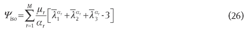 Attard [46] and Attard and Hunt [25] proposed a strain energy function for isotropic hyperelastic materials that can be considered as the generalization of the Mooney model with higher-order terms in the incompressible component and a generalization of Simo and Pister’s [40] proposal for the compressible component. The isochoric part of the energy function proposed by Attard is as follows