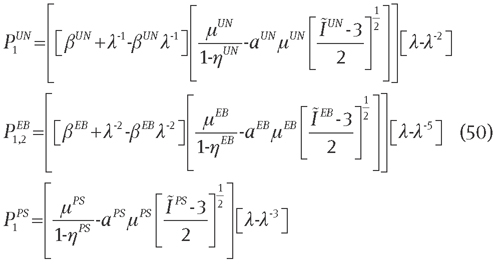The necessary analytical expressions for the Piola stresses [Pi(λi)] for the three deformation modes UN, EB, and PS are obtained from Eq. (23) as