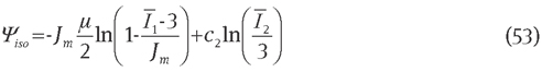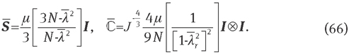 In Eqs. (46) and (47), μ, a, λm, and β (0≤β≤1) are the material parameters. The molecular basis of this interesting approach has been explained in several articles, cf. [29, 53]. Nevertheless, due to the phenomenological nature of an important parameter, i.e., β, this model is confined to the phenomenological model group [11, 12]. Evaluation of Eqs. (11) and (12) provides the corresponding fictitious stress tensor, tangent operator and analytical formulations, respectively: