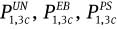 The fitting quality is good to excellent in the UN (left). Overestimations are observed for the UN simulations by the EB- and PS-fitted parameters (middle and right, respectively).