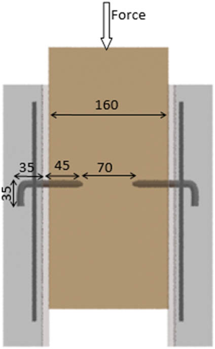 3. Mechanical characterization of the different connectors after their shaping with double shear tests on an electromechanical press equipped with an acquisition unit and potentiometric sensors. Specimens for shear tests are composed of timber and a 5 cm-thick reinforced concrete slab (Figure 8).