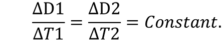 In this assumed process, if ΔD represents the difference in degrees at two separate moments within a time interval of ΔT, the condition of uniformity will necessitate that for any two arbitrarily chosen time intervals, such as ΔT1 and ΔT2, the average degree generated during those intervals must consistently be equal. In a similar fashion, we can formulate the uniform generation of a degree in time as follows:
