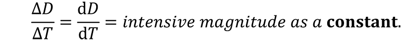 By incorporating the continuity condition, Kant can establish a mathematical analogy between the generation of a quantity over a duration of time and when that duration becomes infinitely small, approaching zero. It is the continuity thesis that enables Kant to consider such infinitesimal time intervals. If I define dD/dT as the apprehension of a degree (dD) in nearly an instantaneous moment (dT) yielding the “quantity of something insofar as it fills time”, this is to be sure some representation that cannot be intuitive or objective. The extension is infinitely small to yield any magnitude or evoke ‘the consciousness of a homogeneous manifold’. Nevertheless, through a mathematical analogy that factors in the uniformity condition, I can envision a uniform and continuous generation over an extended period of time (ΔDT) that yields an equivalent apprehension in an instant. Since the time intervals in the uniform model of generating a quantity can be taken arbitrarily, I can now relate the rising of a degree in an instant (/dT) to the rising of that degree in any time interval (ΔD/ΔT). This will read as follows: