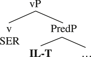 Almost all syntactic approaches interpret estar as a more complex and specified element than ser, to the point that in some approaches, ser is assimilated to a spurious element without selectional properties that, like some analyses of English be, is introduced as a dummy element to support agreement (see Arche et al. 2019 for an overview, and also Brucart 2012; Escandell 2018; Escandell and Leonetti 2002; Gumiel-Molina et al. 2020; Sánchez Alonso 2018; Zagona 2012). There are good empirical reasons to make this proposal, revised in the works cited above. Some of those reasons are that estar coerces predicates to SL readings while ser does not coerce to an IL reading (Escandell 2018; Escandell and Leonetti 2002; Fábregas 2012); or that ser appears in identificational contexts lacking any predicative value (Fernández Leborans 1999) and is compulsory with relational adjectives that do not express properties (Gumiel-Molina et al. 2020).
