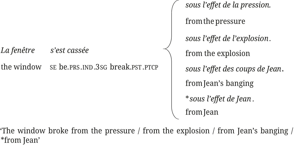 Generally speaking, the reflexive clitic in Romance RAC signals telicity and a suppressed causer (Cennamo 2016: 971). As concerns aspectual structure, RAC shows a stronger affinity to a resultant state than UAC; such a difference has been defended for French by Zribi-Hertz (1987), Labelle (1992), Labelle and Doron (2010), Heidinger (2010), Legendre and Smolensky (2010), and Schøsler (2021). As concerns causal structure, a causer is said to be semantically more present in RAC than UAC. Such a difference with respect to causal structure has been defended for French in Labelle (1992), Labelle and Doron (2010), Heidinger (2010, 2015, 2019, and Kailuweit (2011, 2012. It should be noted, however, that the semantic differences between the two formal types of anticausatives are undoubtedly subtle and still a matter of debate (see Dobrovie-Sorin [2017: 7–11] for a recent overview and Martin and Schäfer [2014] for a critical discussion of such semantic differences).