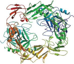 Nearly all plasma gallium is tightly bound to the iron-transport protein, transferrin (TF). TF transports its metal load into cells through the TF receptor, a protein that can bind two TF molecules. This receptor binds most strongly to diferric TF, less strongly to monoferric TF, and weakly to apotransferrin (having no metal ions) at neutral pH levels. The complex of metal-bearing TF and TF receptor is taken into the cell by endocytosis; the endosome is then acidified to release the metal. Malignant cells generally have a very high TF receptor expression. Gallium binds even more avidly to the related protein lactoferrin, which can remove Ga from TF. A third iron-binding protein to which gallium can bind is ferritin. Ferritin serves as iron storage, is present in most cells to varying degrees, and is particularly concentrated in the Kupffer cells of the liver; it is also concentrated in some other tissue macrophages (Lessa et al., 2012).