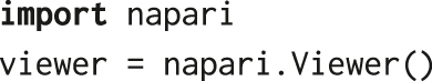 The method viewer.add_image() can be then used to add individual stacks as layers in napari, together with the colour map specification and contrast limits: