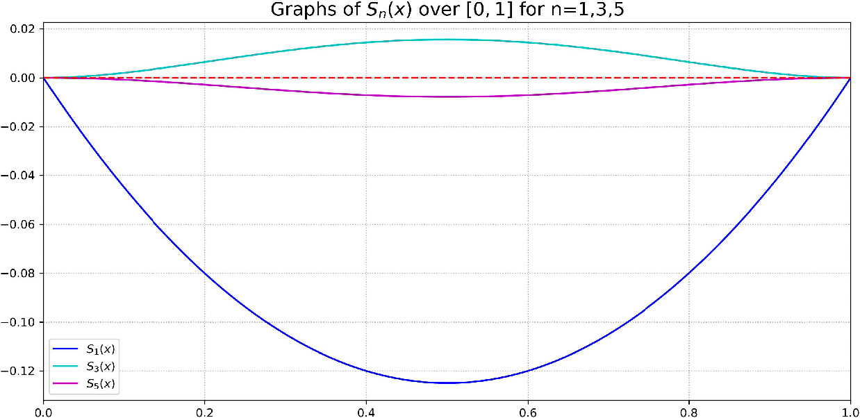 We plot the graphs of Sn (x) for n ∈ {1, 3, 5}.