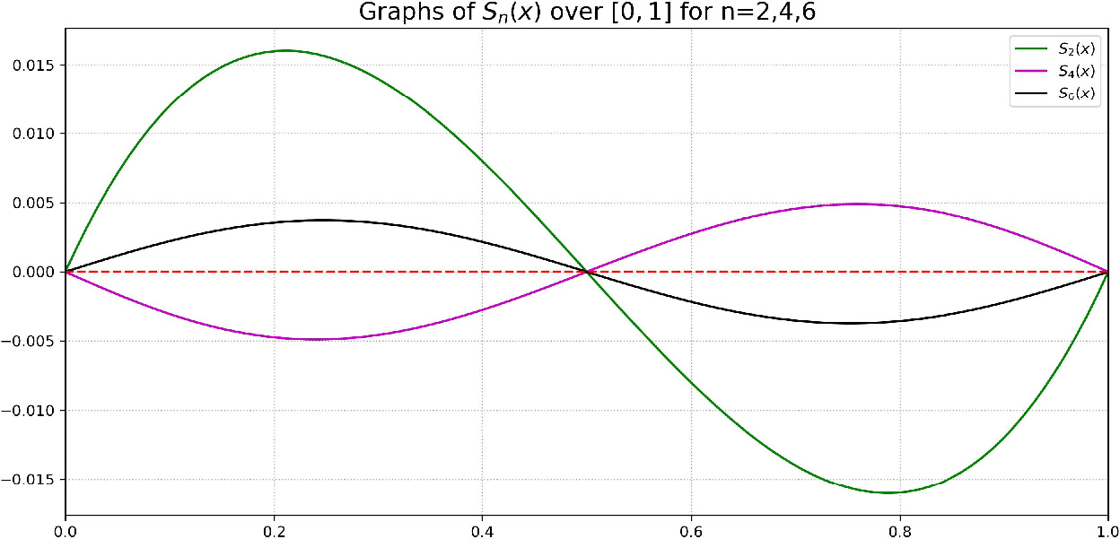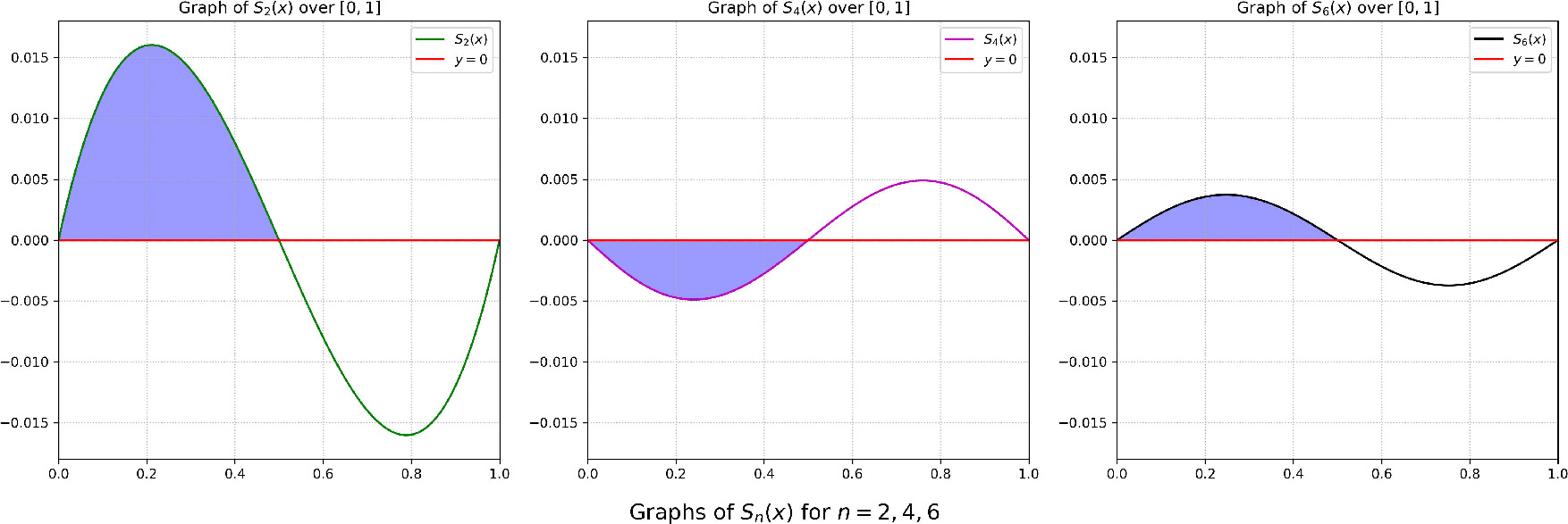 Here are the graphs of Sn (x) for n ∈ {2, 4, 6}.