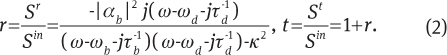 Assuming that the system is symmetric with respect to the transmission and reflection channels, the amplitudes of the scattered waves can be expressed [53, 55] in terms of the modal amplitude of the bright mode b as and