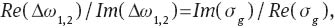 we can use the complex-valued spectral shifts Δω1,2 to estimate the ratio of the imaginary and real parts of graphene’s conductivity. Specifically, it can be shown that for small spectral shift the following relation holds: