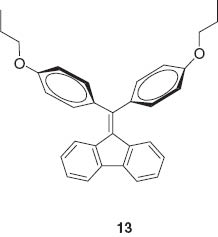 Jia and coworkers prepared coassemblies of a dipeptide containing a pyrene group and a dipeptide containing lactam rhodamine B (Figure 8) that exhibited multi-luminescent color switching from blue to green and a reddish color by applying a mechanical stimulus [72]. These color transitions included an emission wavelength shift from blue to green, and an unusual switching of emission intensity at long wavelength (non-luminescent to reddish luminescence). Thomas, Fraser, and coworkers demonstrated a visible fluorescence color change from blue-green to yellow-green for difluoroboron dibenzoylmethane-polylactide in powder and film forms by applying a shearing force [73]. A mechanically induced conversion from crystalline to amorphous induces a molecular rearrangement which permits greater rotational freedom to form excimeric or intermolecular charge-transfer species. Dong, Tang, and coworkers reported unusual aggregation-induced emission for diphenyldibenzofulvene molecules 13 [74].