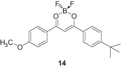 Fluorescence of their crystals could be turned off and on respectively upon grinding and annealing, which is attributed to amorphization and crystallization. Fraser and coworkers demonstrated reversible mechanochromic luminescence of a difluoroboron avobenzone solid 14 [75].