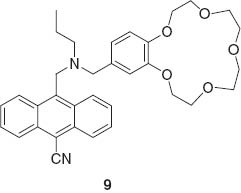 Photonic aspects of supramolecular systems can be applied for use in materials detection [17, 35–39]. Detection of particular chemical species accompanied by specific variations of fluorescence emission is a powerful method in analytical chemistry. Fluorescent probes that bind to specific ions through supramolecular recognition are widely used in analyses of living cells [40–42]. In particular, development of a fluorescent probe for Ca2+ ion detection fura-2 6 by Tsien and coworkers [43] promoted significant activity in the corresponding research field.