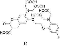 The logic gate actions of supramolecular host are based on different sensitivities to Na+ and H+ based on an internal charge transfer mechanism. Suzuki and coworkers reported multi-detection probe molecules KCM-1 10 for Ca2+ and Mg2+ [60].