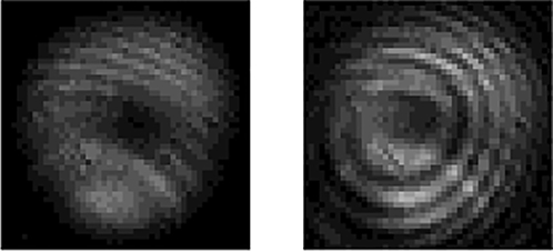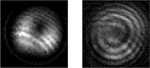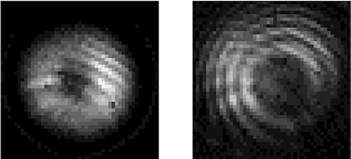 | Pump with OAM | λ (NBF1-4) (nm) | Fluorescent characteristics | Purity of fluorescence | Observed modes & interferograms |