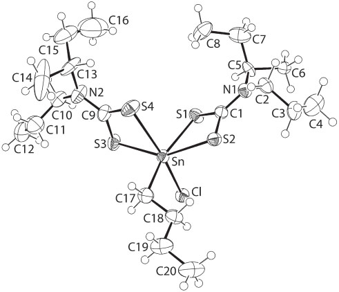 - Crystal structure of n-butyl-chlorido-bis[N-sec-butyl,N-n-propyl-carbamodithioato κ2S,S′]-tin(IV), C20H41ClN2S4Sn