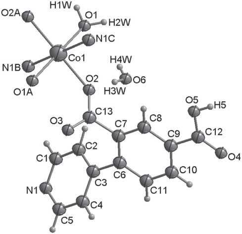 A mixture of Co(NO3)2 6H2O (0.1 mmol, 267 mg), 4-(pyridin-4-yl)-isophthalic acid (0.1 mmol, 24.3 mg) (H2tpa) and distilled water (10 mL) was heated in a 25 mL stainless steel reactor with a Teflon liner at 413 K for 24 h, followed by slow cooling to room temperature to formed crystals.
