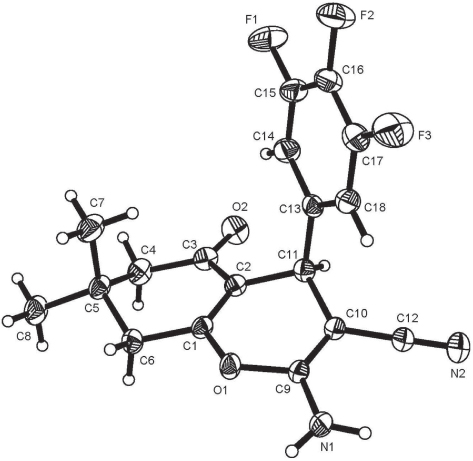 - Crystal structure of 2-amino-3-cyano-7,7-dimethyl-5-oxo-4-(3,4,5-trifluorophenyl)-4H-5,6,7,8-tetrahydrobenzo[b]pyran, C18H15F3N2O2