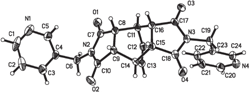 - Crystal structure of 2,6-bis(3-methylpyridinyl)hexahydro-4,8-ethenopyrrolo-[3,4-f]isoindole-1,3,5,7(2H,6H)-tetrone, C24H20N4O4