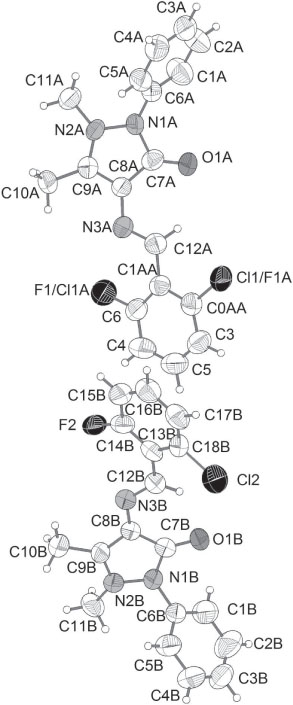 - Crystal structure of 4-[(E)-(2-chloro-6-fluorobenzylidene)amino]-1,2-dihydro-2,3-dimethyl-1-phenylpyrazol-5-one, C18H15ClFN3O