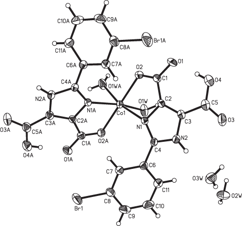 - Crystal structure of diaquabis(2-(3-bromophenyl)-5-carboxy-1H-imidazol-4-carboxylato-κ2O,N) cobalt(II) trihydrate, C22H22Br2CoN4O13