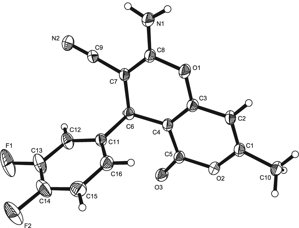 - Crystal structure of 2-amino-7-methyl-4-(3,4-difluoro-phenyl)-5-oxo-4H,5H-pyrano[4,3-b]pyran-3-carbonitrile, C16H10F2N2O3