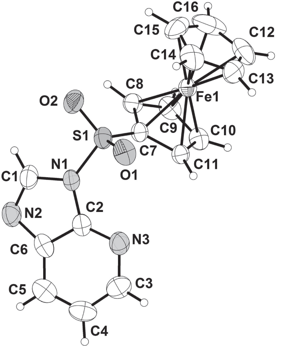 16. Crystal structure of 1-ferrocenylsulfonyl-1H-imidazo[4,5-b]pyridine, C16H13FeN3O2S