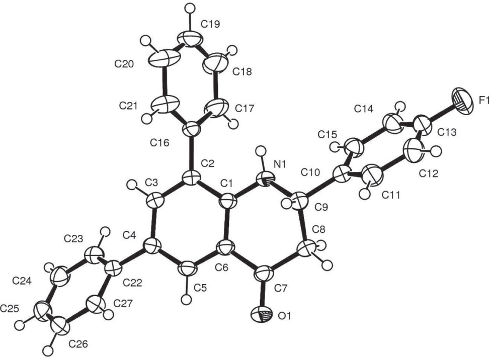 - Crystal structure of 6,8-diphenyl-2-(4-fluorophenyl)-2,3-dihydroquinolin-4(3H)-one, C27H20FNO