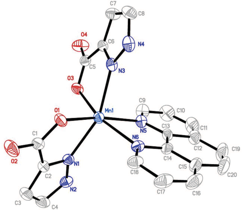 - Crystal structure of (1,10-phenanthroline-κ2N,N′)-bis(1H-pyrazole-3-carboxylato-κ2N,O)manganese(II) trihydrate, C20H20N6O7Mn