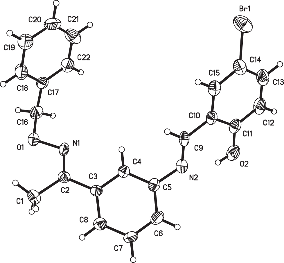 - Crystal structure of 1-(3-((5-bromo-2-hydroxybenzylidene)amino)phenyl)ethanone O-benzyl oxime, C22H19BrN2O2