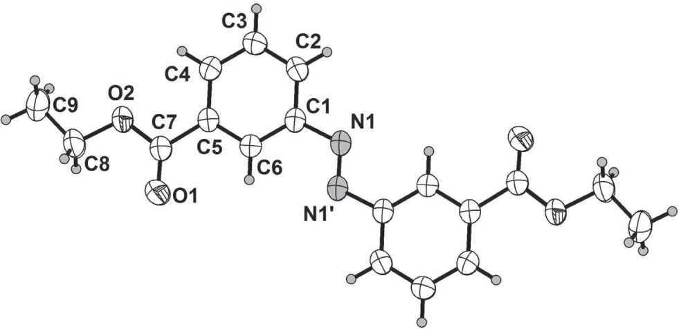 - Crystal structure of diethyl 3,3′-(diazene-1,2-diyl)(E)-dibenzoate, C18H18N2O4