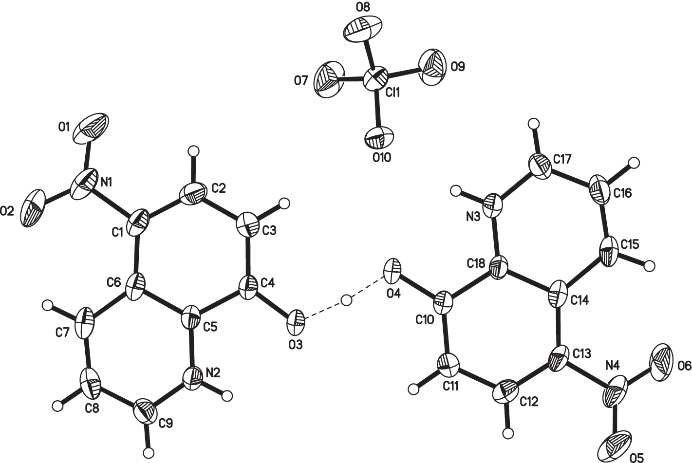 - Crystal structure of (8-hydroxy-5-nitroquinolinium) perchlorate – 8-hydroxy-5-nitroquinoline (1/1), C18H13ClN4O10