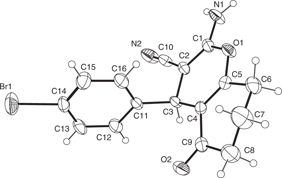 - Crystal structure of 2-amino-4-(4-bromophenyl)-5-oxo-5,6,7,8-tetrahydro-4H-chromene-3-carbonitrile, C16H13BrN2O2