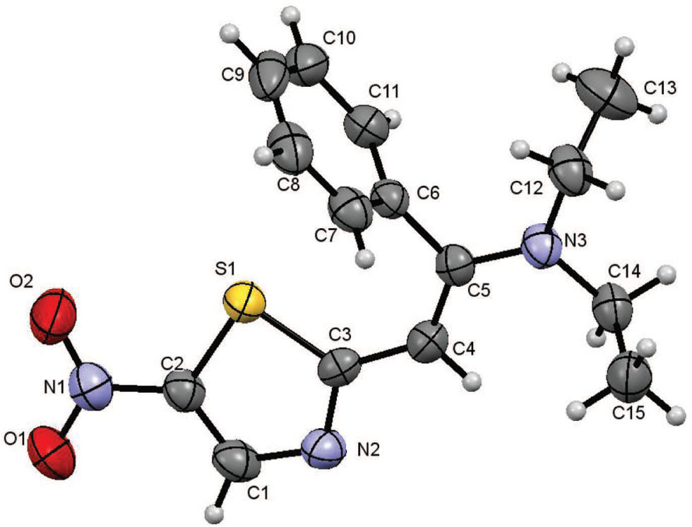 - Crystal structure of (E)-N,N-diethyl-2-(5-nitrothiazol-2-yl)-1-phenylethen-1-amine, C15H17N3O2S