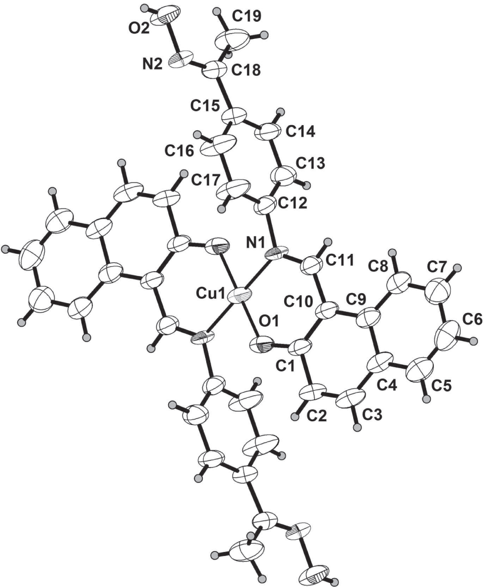 - Synthesis and crystal structure of bis{1-(((4-(1-(hydroxyimino)ethyl)phenyl)imino)methyl)naphthalen-2-olato-κ2O,N}copper(II), C38H30CuN4O4