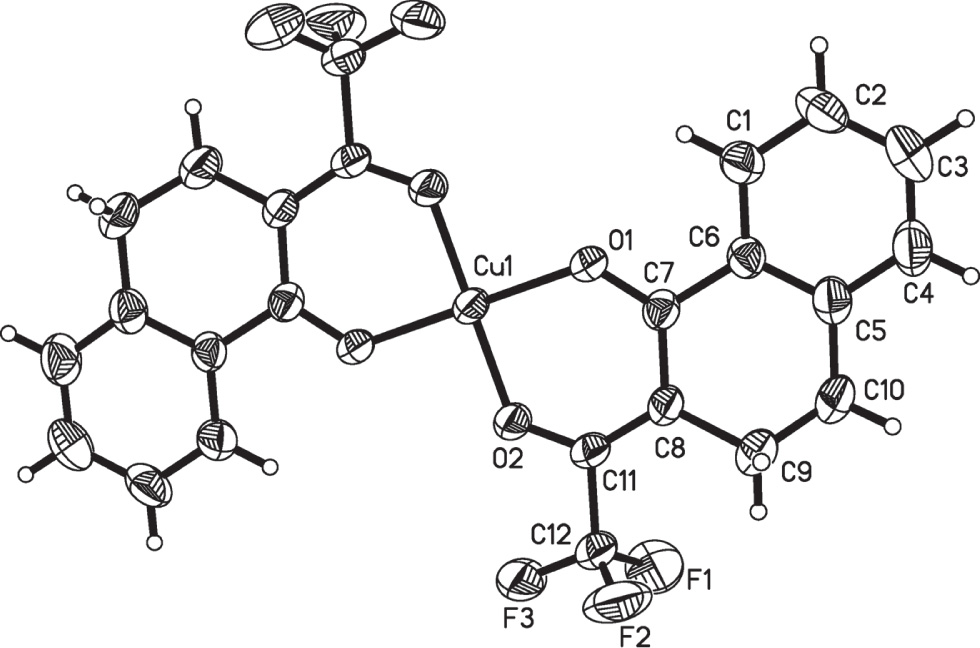 - The crystal structure of bis(2-(2,2,2-trifluoroacetyl)-3,4-dihydronaphthalen-1-olato-κ2O,O′)copper(II), C24H16CuF6O4
