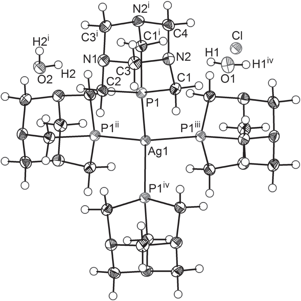 - The crystal structure of tetrakis(1,3,5-triaza-7-phosphatricyclo[3.3.1.13,7]decane-κP)silver(I) chloride dihydrate, C24H60AgClN12O6P4