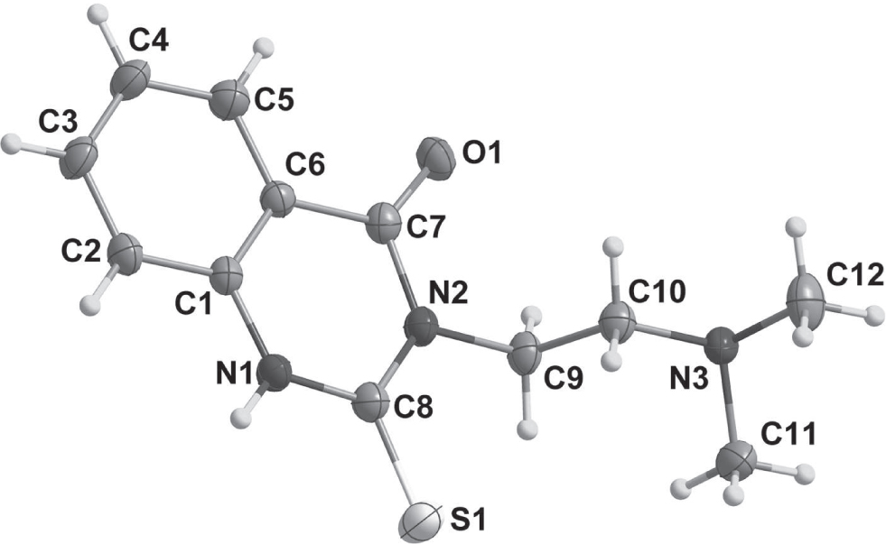 - Crystal structure of 3-(2-dimethylaminoethyl)-2,3-dihydro-2-thioxoquinazolin-4(1H)-one, C12H15N3OS
