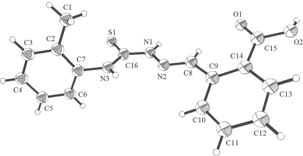 - The crystal structure of (E)-2-((2-(o-tolylcarbamothioyl)hydrazono)methyl)benzoic acid, C16H15N3O2S