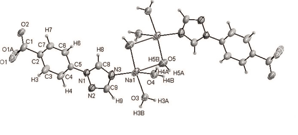 - Crystal structure of di-μ2-aqua-tetraaqua-bis(4-(1H-1,2,4-triazol-1-yl)benzoato-κN)disodium(I) C18H24N6Na2O10