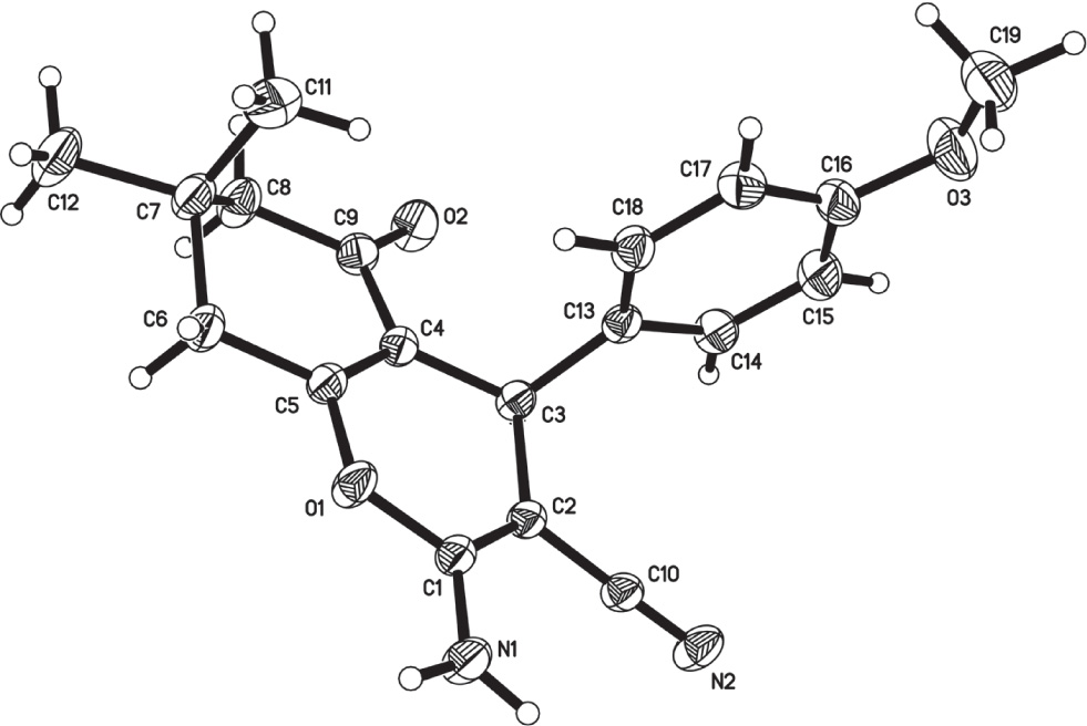 - Crystal structural of 2-amino-4-(4-methoxyphenyl)-3-cyano-7,7-dimethyl-5-oxo-4H-5,6,7,8-tetrahydrobenzo[b]pyran, C19H20N2O3
