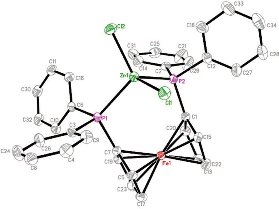 - Crystal structure of dichlorido[1,1′-bis(diphenylphosphanyl)ferrocene-κ2P,P′]zinc(II), C34H28FeCl2P2Zn