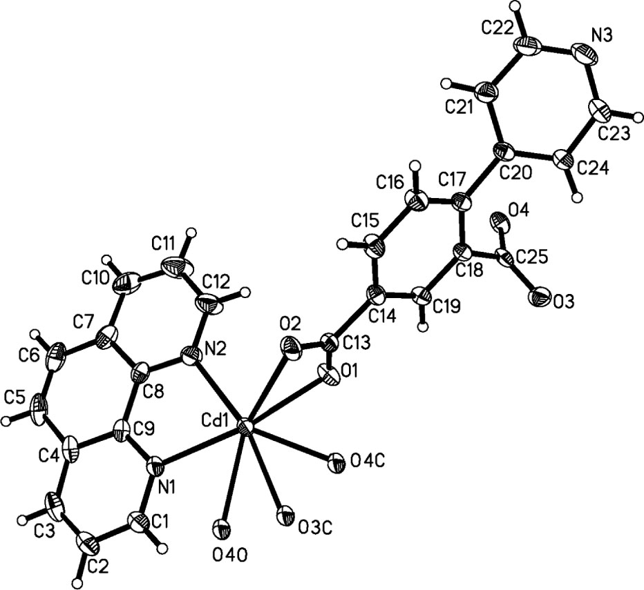 - Crystal structure of catena-poly[(μ3-5-carboxy-2-(pyridin-4-yl)benzoato-κ5O,O′:O′′,O′′′:O′′′)(1,10-phenanthroline-κ2N,N′)cadmium(II)], C100H60N12O16Cd4