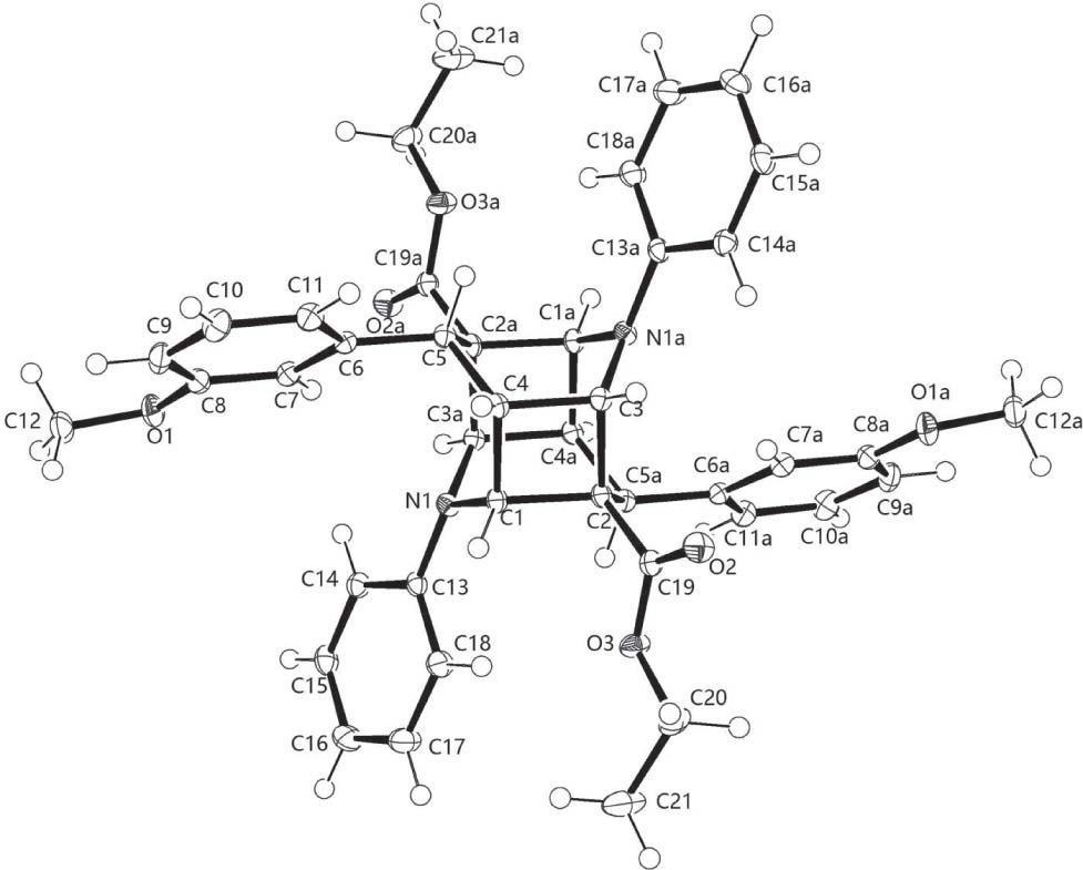 - Crystal structure of diethyl 3,9-diphenyl-6,12-bis(3-methoxyphenyl)-3,9-diazahexacyclo[6.4.0.02,7.04,11.05,10]dodecane-1,11-dicarboxylate, C42H42N2O6