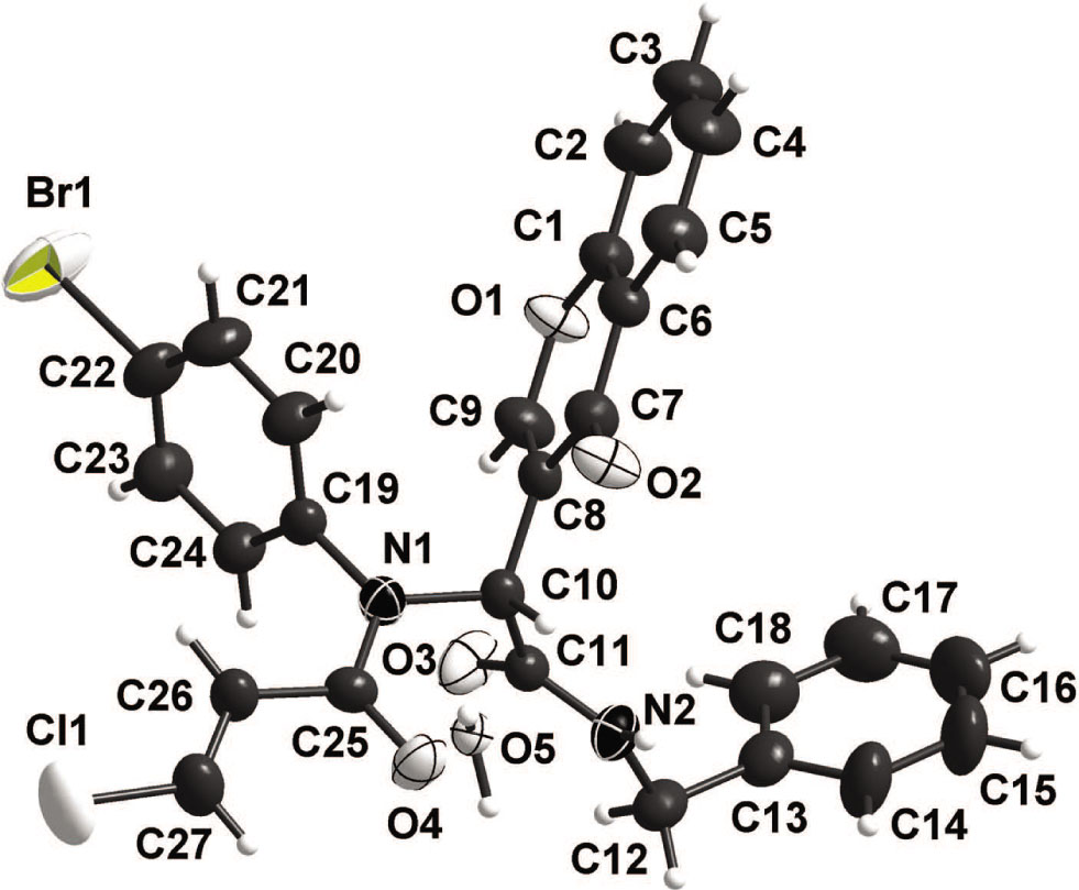21. Crystal structure of (E)-N-(2-(benzylamino)-2-oxo-1-(4-oxo-4H-chromen-3-yl)ethyl)-N-(4-bromophenyl)-3-chloroacrylamide hydrate, C27H22BrClN2O5