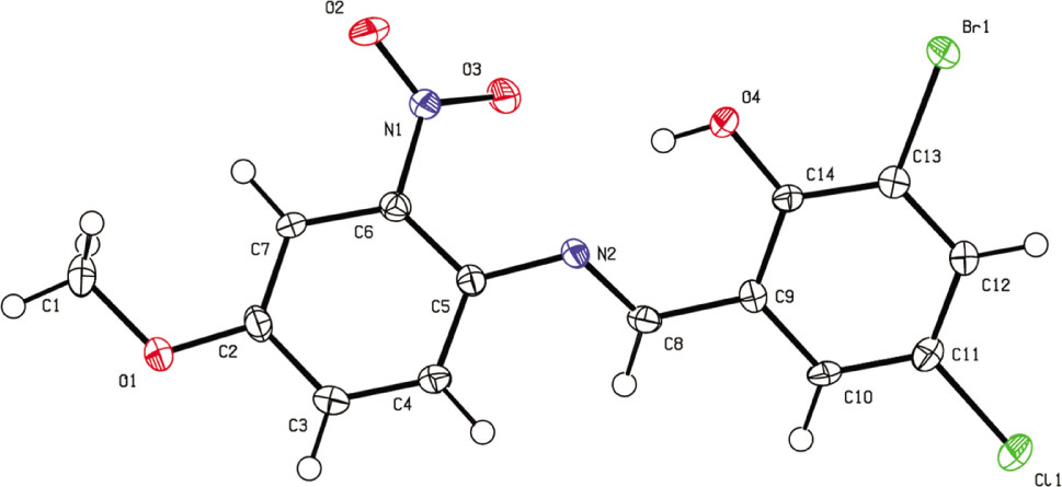 - Crystal structure of (E)-2-bromo-4-chloro-6-(4-methoxy-2-nitrostyryl)phenol, C14H10BrClN2O4