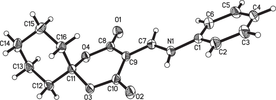 - The crystal structure of 3-((phenylamino)methylene)-1,5-dioxaspiro[5.5]undecane-2,4-dione, C16H17N1O4