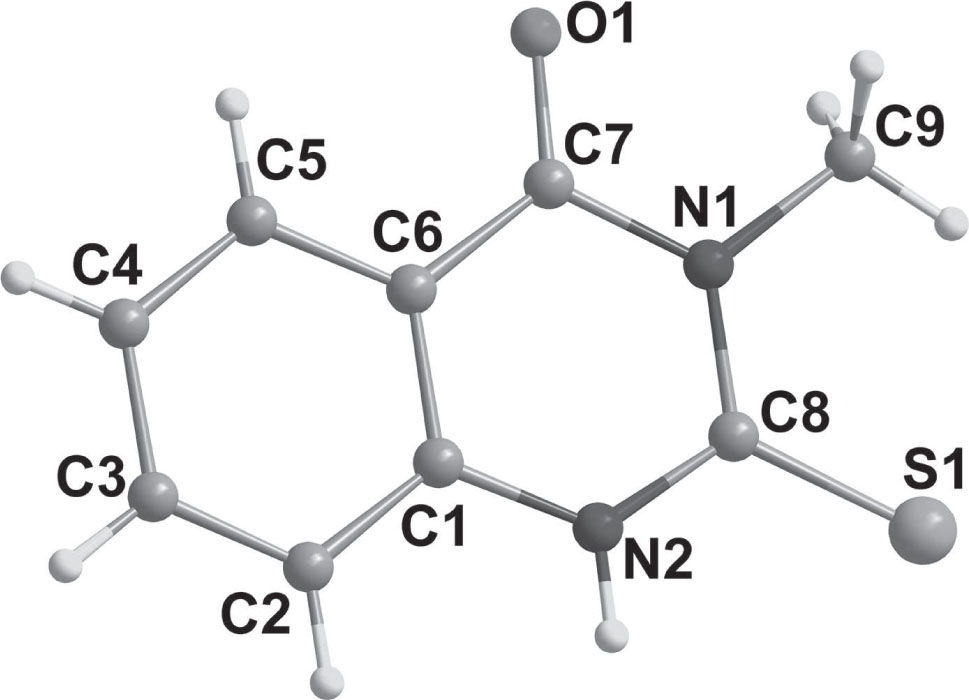 58. Crystal structure of 3-methyl-2,3-dihydro-2-thioxoquinazolin-4(1H)-one, C9H8N2OS